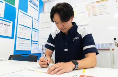コース別の出勤時間に合わせて出社し、点呼を行います。 駐車場にて運行前点検を行ったあと、配送センターへ移動します!